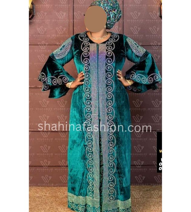 Luxurious velvet kaftan with premium beads, silver work, and elegant design. Available in XS to 6XL sizes. Perfect for formal, semi-formal, and special occasions like weddings, parties, and more