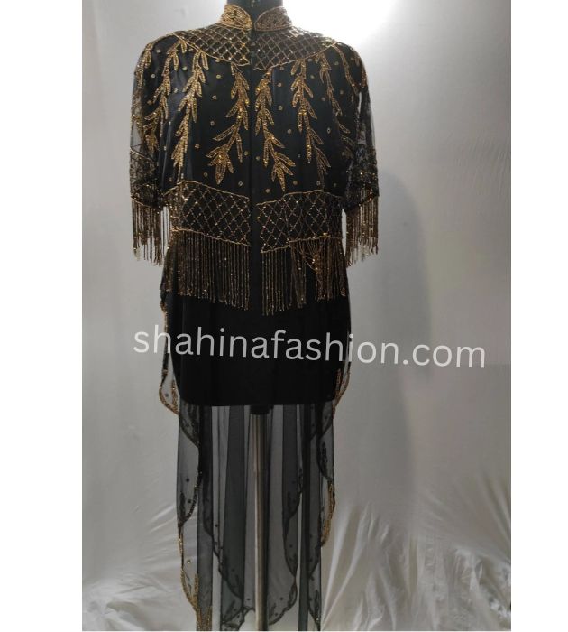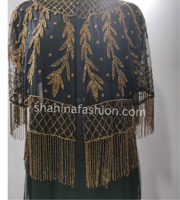 Luxurious Golden Beads Embroidered Chiffon Poncho for Formal Events