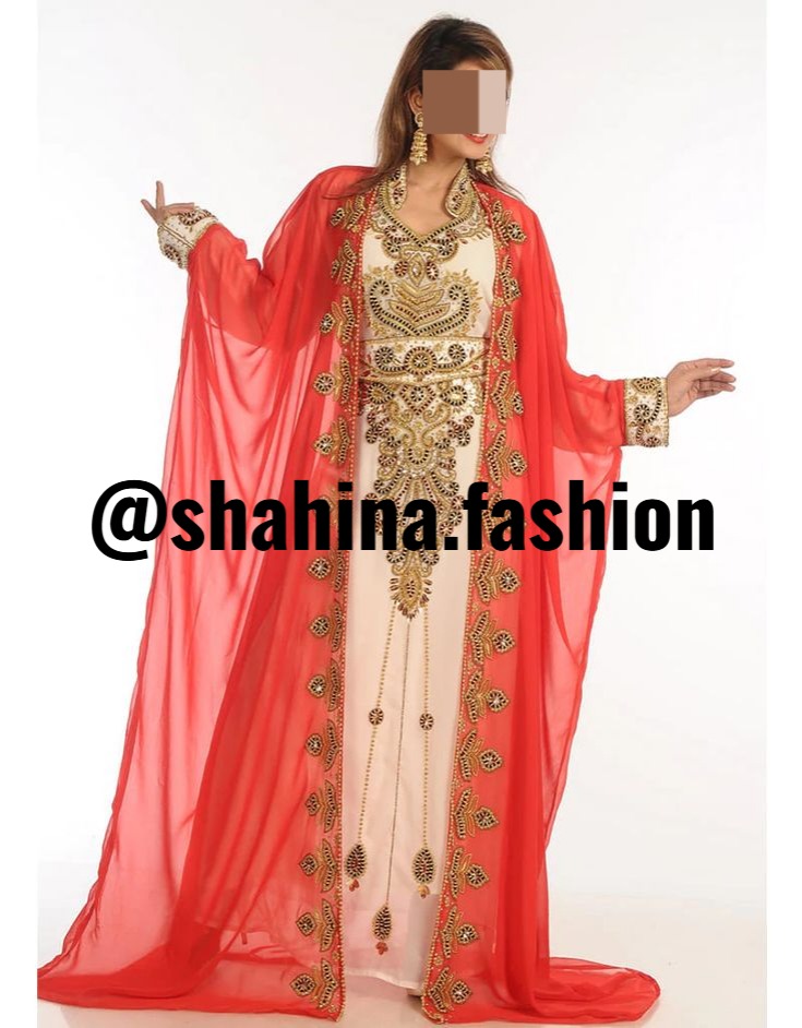 - Includes: 1 jacket kaftan + 1 Belt + 1 inner with beads work and 1 matching headscarf with beads work.