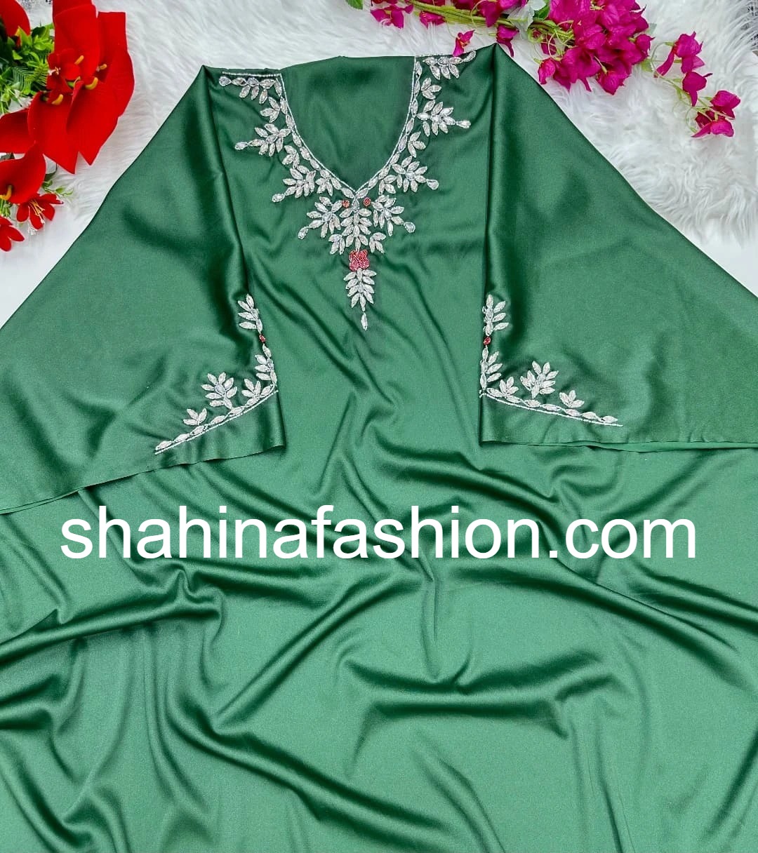 2. Premium Beading: Premium embellished beaded with Milky , Silver, and white beads on neckline.