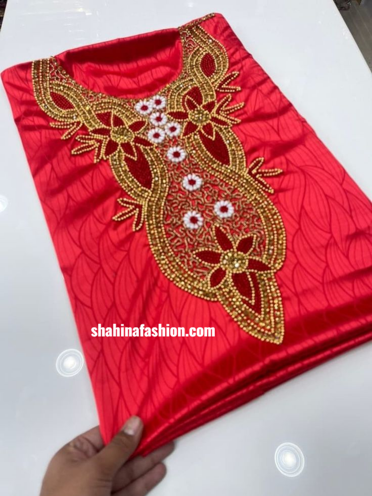 2. Premium Beading: Premium embellished beaded with golden, and Red Bead with White Moti Work.