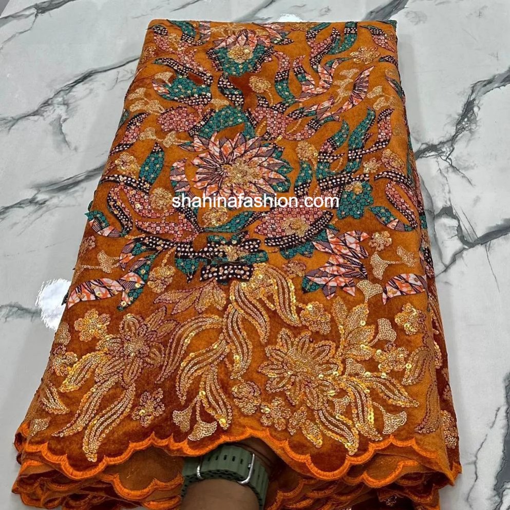 Material: High-quality Perlage fabric with multicolor threadwork and shimmering sequin embellishments.