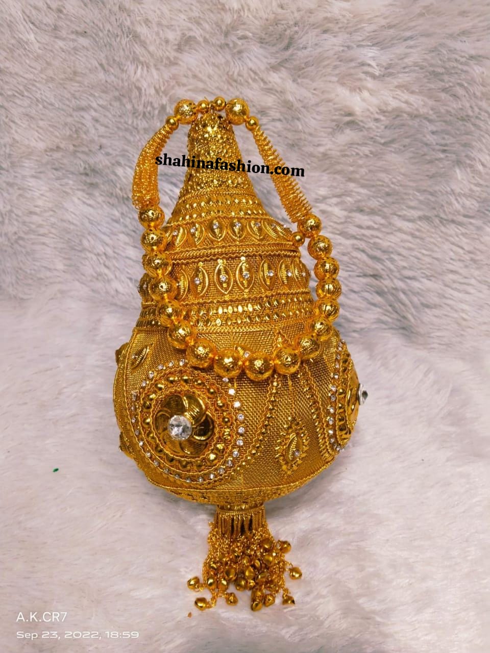 • Elegant Gold Beadwork: Handcrafted with shimmering golden beads for a luxurious and eye-catching finish.
