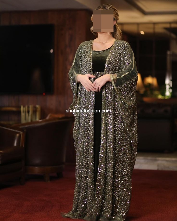 - Features: Long kaftan with full sleeves, paired with a matching headscarf adorned with beads work on both sides.