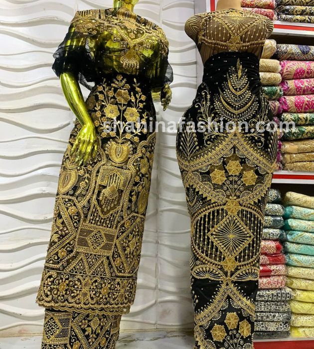 1. Material:  Gorgeous luxurious Net With Taffeta heavily beaded hand-beaded/stoned Taffeta Indian George material.