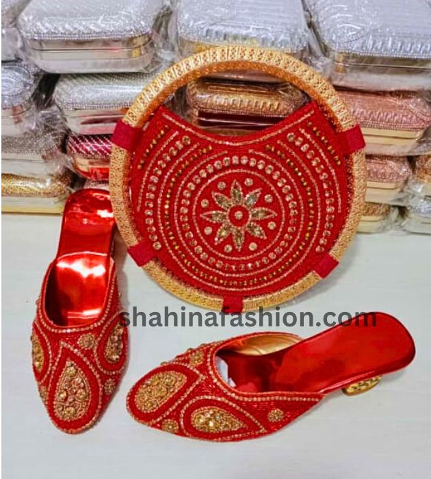 Beautiful Stylist handbags Golden Stone Chain Pearl Designs on Shoes Wear for Women’s